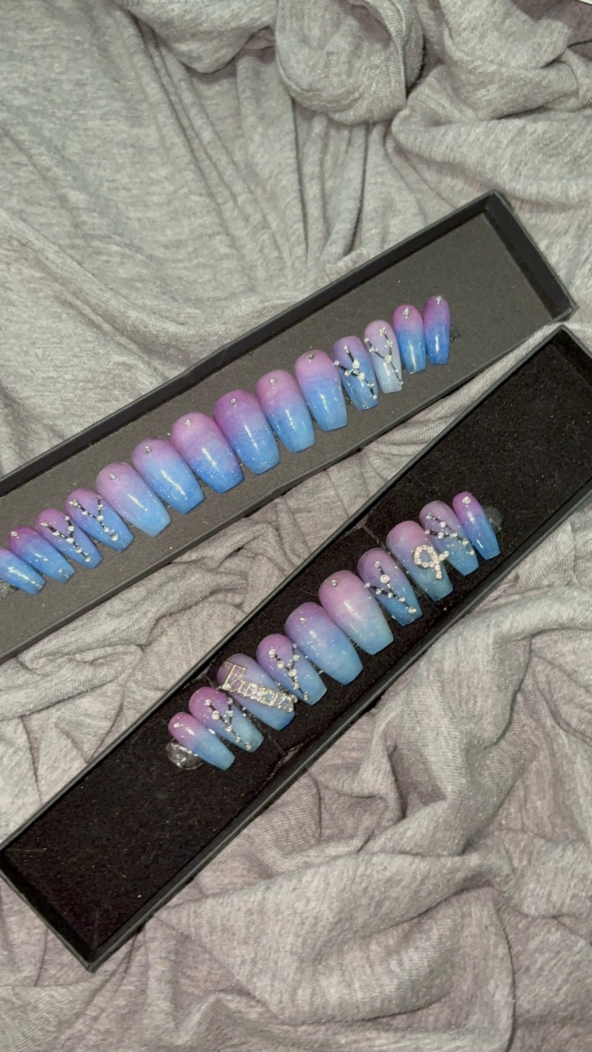 Celebrate your zodiac in style with these stunning blue-to-purple ombré nails, inspired by the Taurus sign. Elegant, vibrant, and full of personality, this set is perfect for anyone looking to show off their starry-side flair.