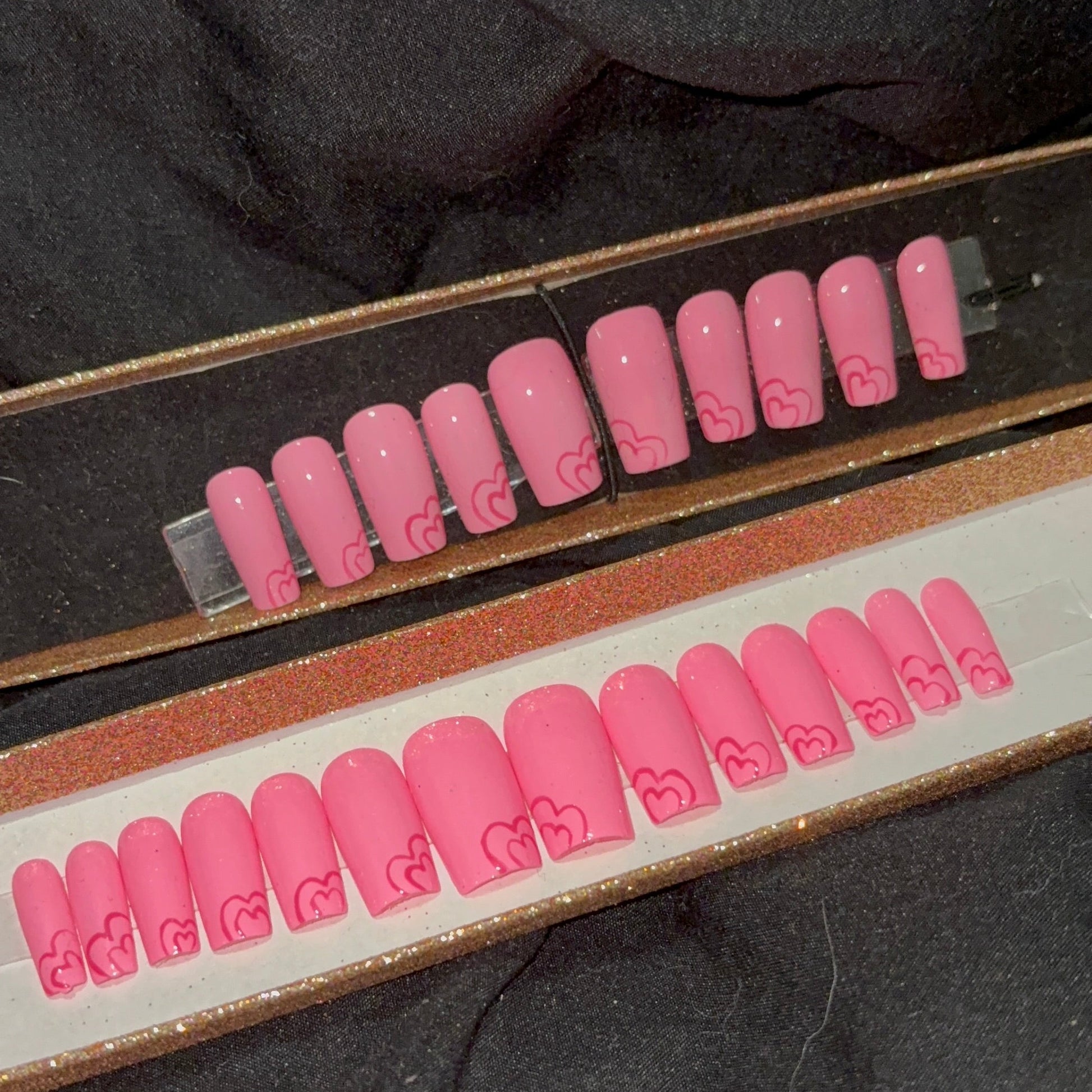 Pink Medium Square Valentine’s Press-On Nails 💕✨