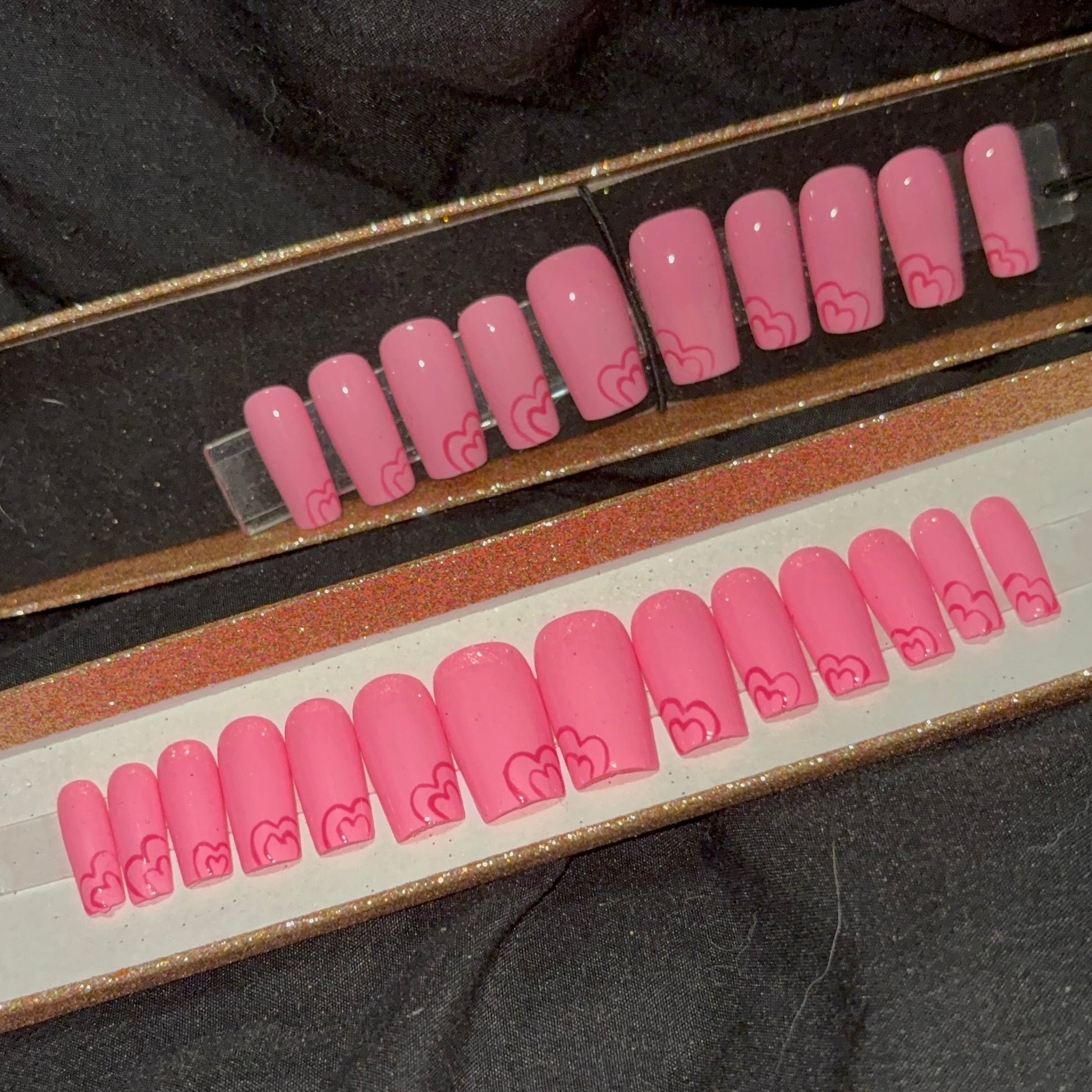 Pink Medium Square Valentine’s Press-On Nails 💕✨