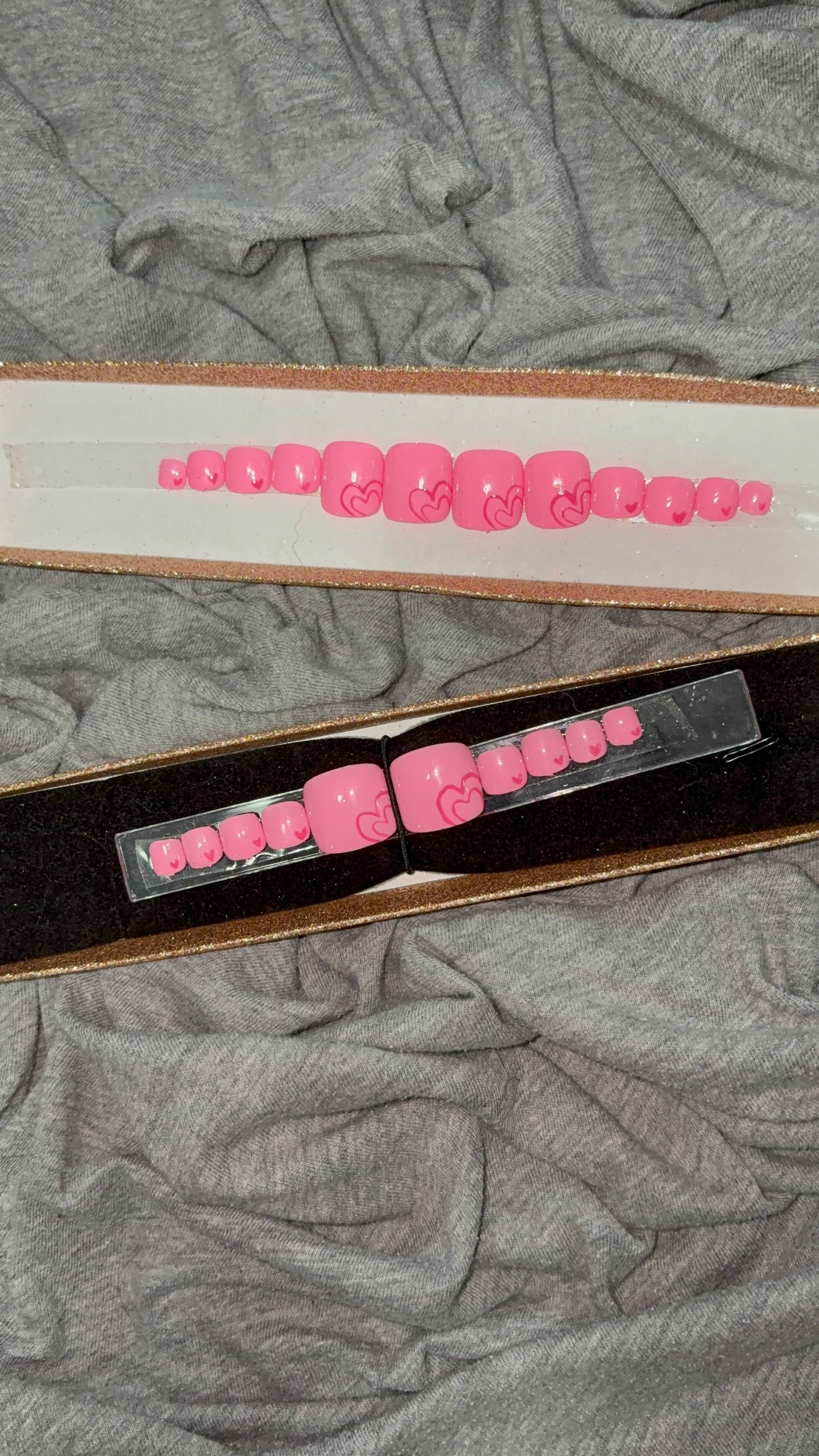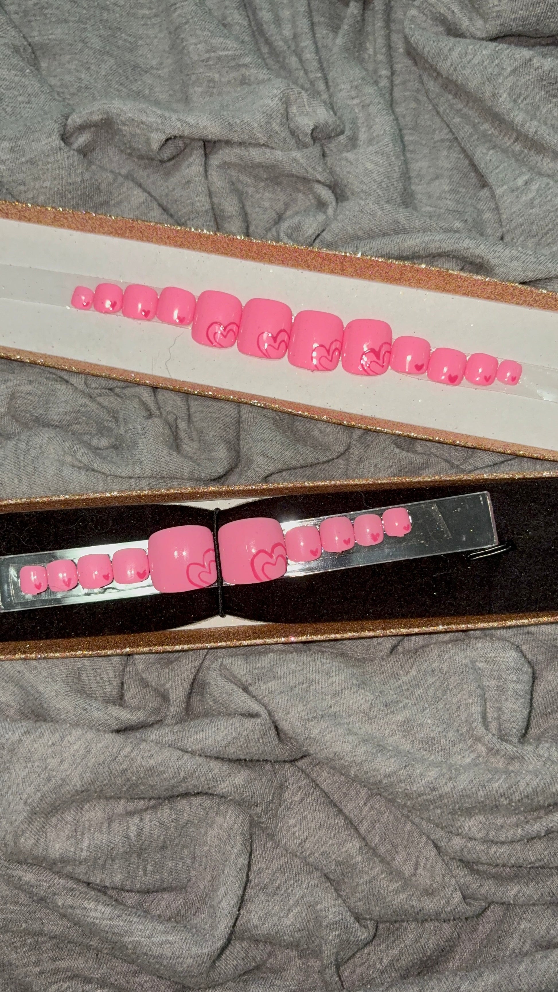 Add a touch of sweet charm to your pedicure with these square pink toenails, featuring playful dark pink hearts. Perfect for a fun, flirty look that stands out, this set is great for everyday wear or special occasions.